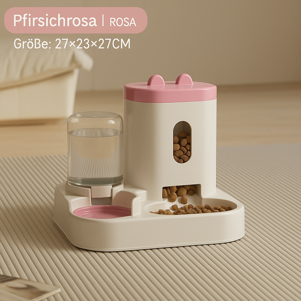Sorgen Sie mit unserem automatischen Futter- und Wasserspender für Hunde und Katzen für eine stressfreie Ernährung Ihrer Haustiere – ganz ohne Strom! Perfekt für beschäftigt Tierbesitzer, die ihren Tieren das Beste bieten wollen.