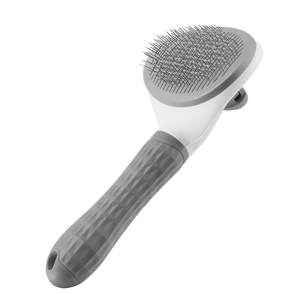 Answer 1: The product offers a self-cleaning function, allowing pet owners to remove loose fur effortlessly. It is designed with a non-slip ergonomic grip for comfortable use and gentle bristles that provide a soothing massage while grooming.